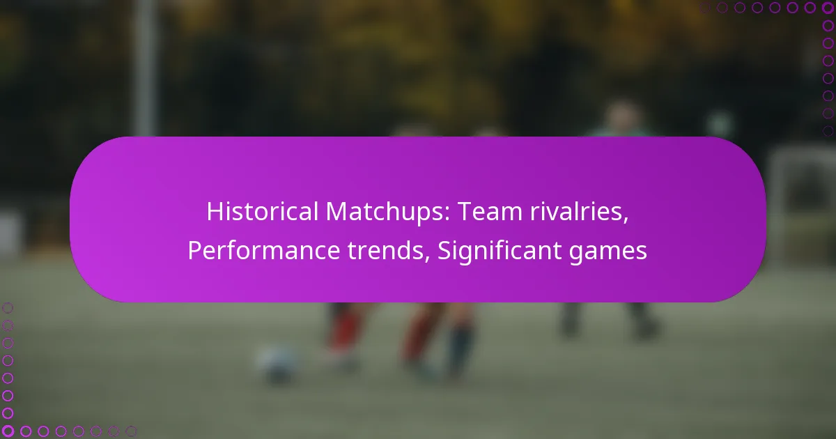 Performance trends in historical matchups reveal patterns in team rivalries, showcasing how teams have fared against each other over time. These trends can be analyzed through win-loss records, scoring averages, and the impact of player changes, providing insights into the dynamics of competition.